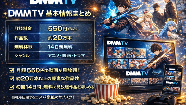 「DMM TVって安いけど、本当に見るものは多いの?」「月額550円でどれくらい楽しめるの?」そんな疑問を持っている人に向けて、今回はDMM TVの見放題作品タイトル数データをもとに、DMM TVをおすすめできる理由をわかりやすく解説します...