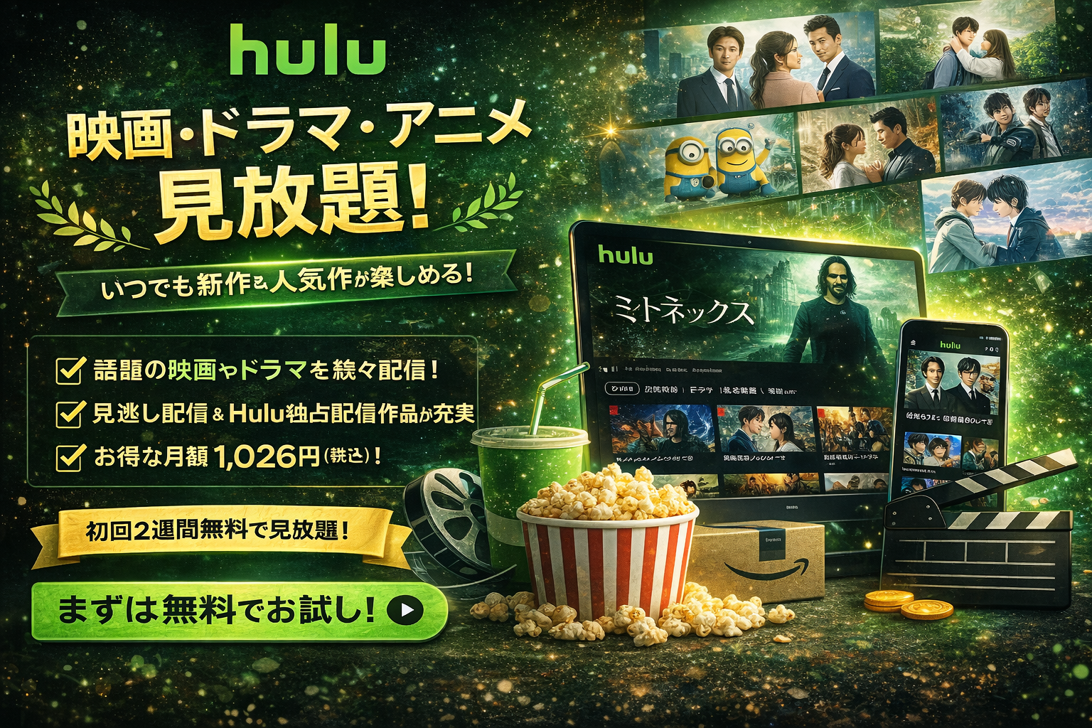Huluは、日本のドラマやバラエティ番組に強い動画配信サービスです。