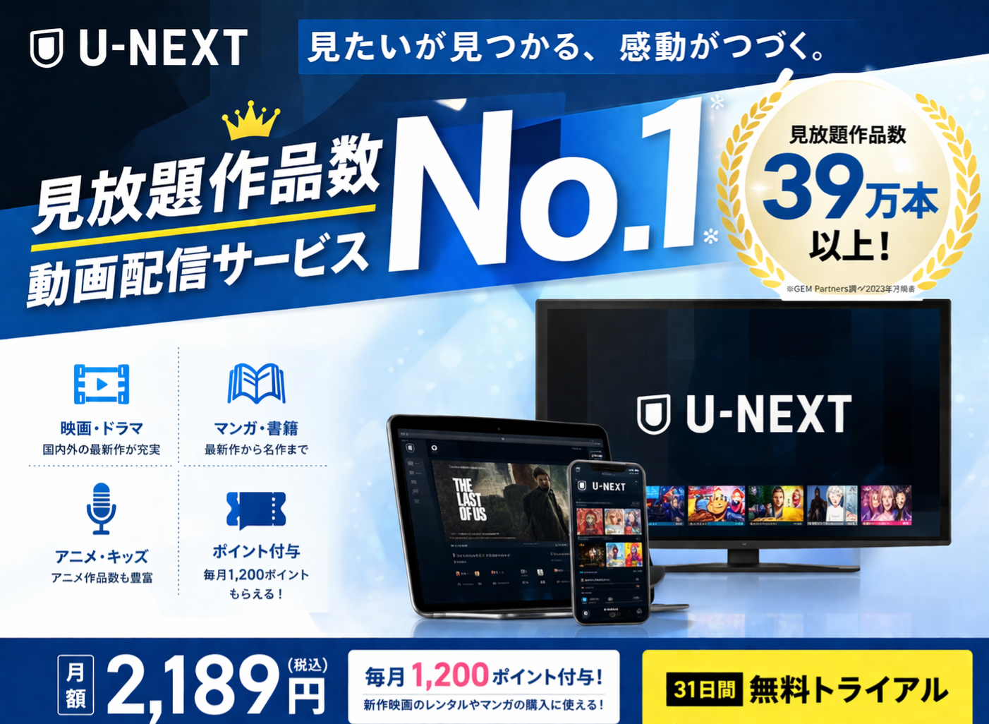 • U-NEXT:2,189円