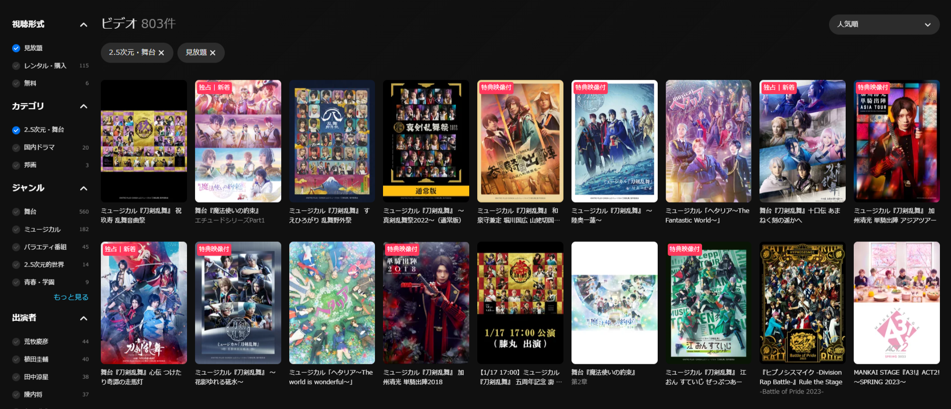 このジャンルは、NetflixやAmazon Prime Videoではあまり強くない分野です。アニメ原作の舞台、ミュージカル、声優・俳優関連コンテンツが好きな人にとっては、DMM TVならではの魅力になります。